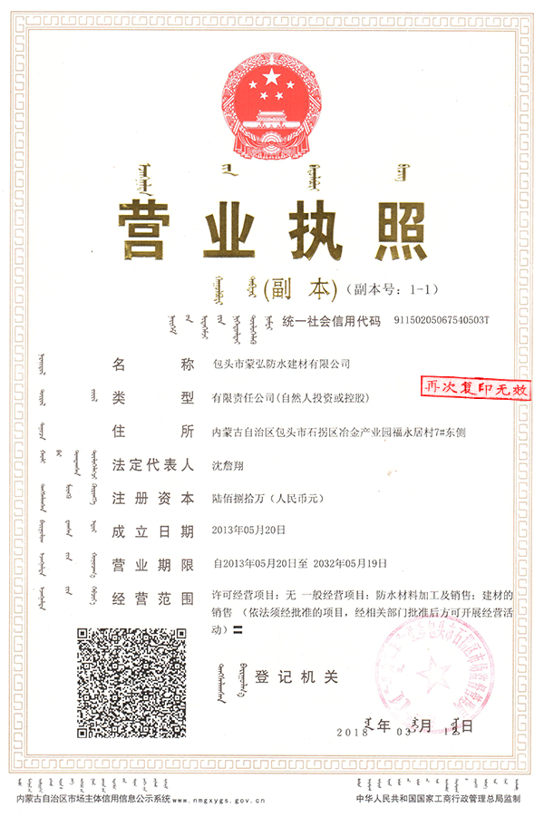 蒙弘防水建材營(yíng)業(yè)執(zhí)照